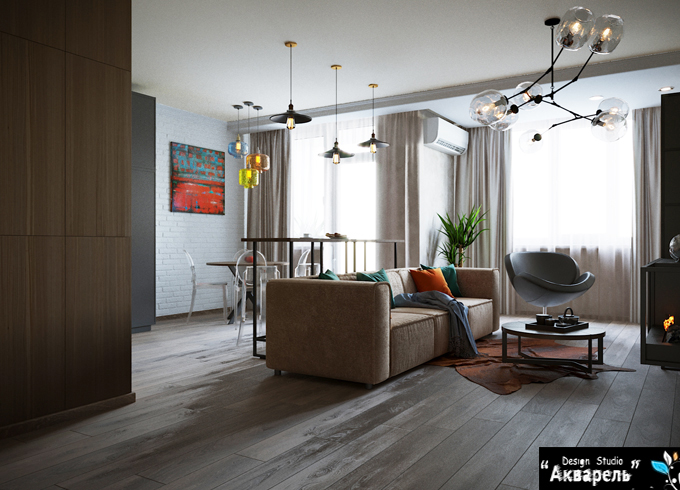 Заказчики поставили задачу создать современный интерьер с элементами лофта. |